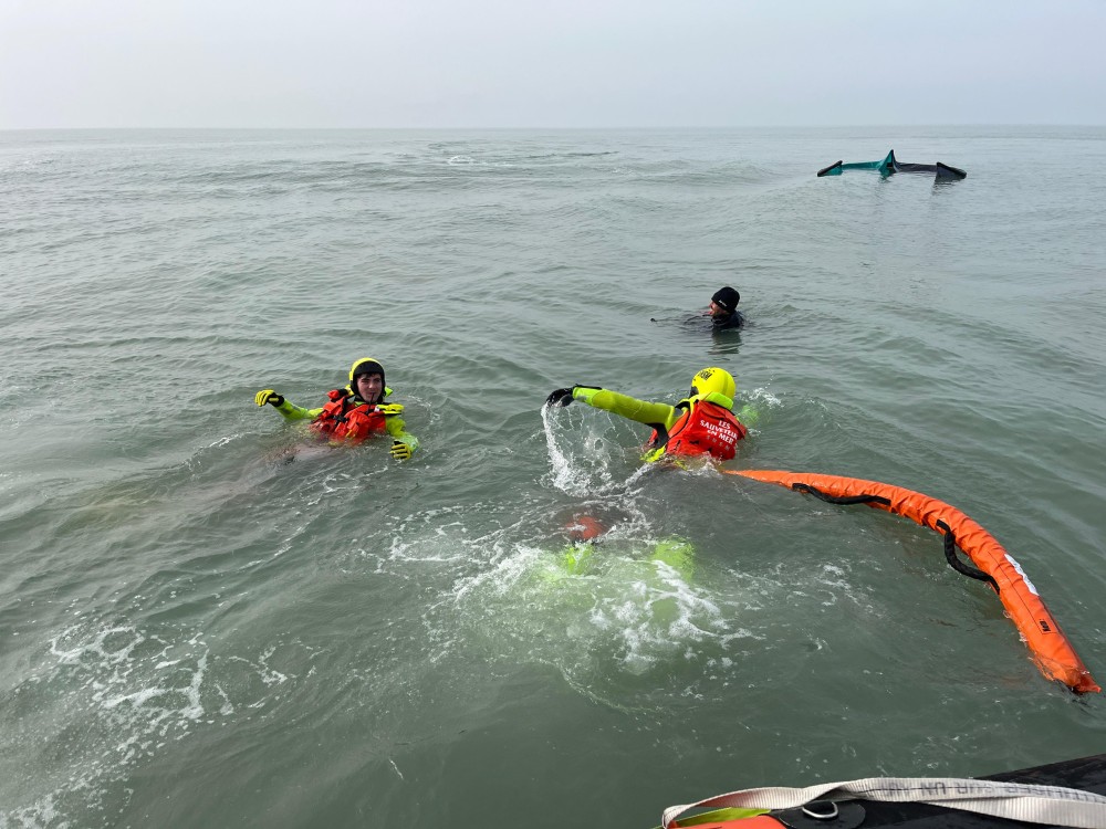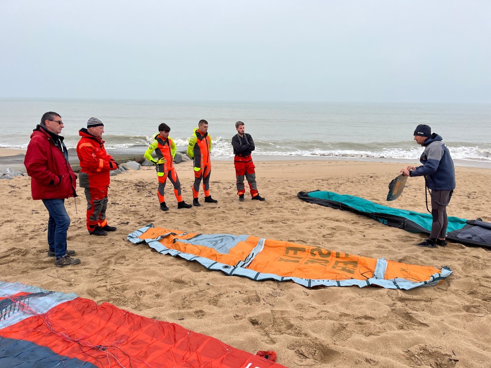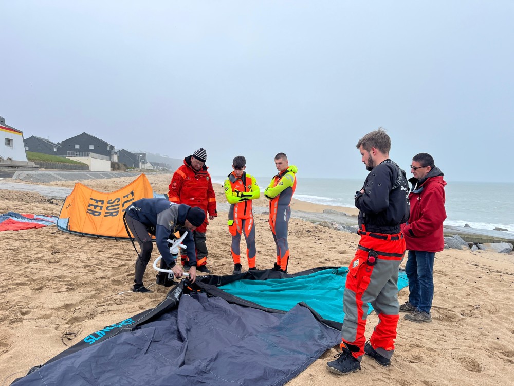 Samedi 7 mars 2026, un atelier de sécurité a été mis en place avec le Poste de Secours SNSM de Jullouville.La SNSM a sollicité l'École et son Moniteur pour découvrir etse familiaraiser avec le milieu du Kitesurf, notamment le matériel et toutes les techniques de mise à l'eau ou de récupération.